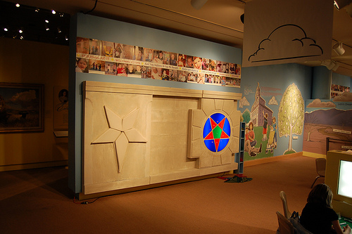 The inverted pentagram is a symbol for Lucifer, just as the “all seeing eye”, and can also be see within the Mormon historical museum.